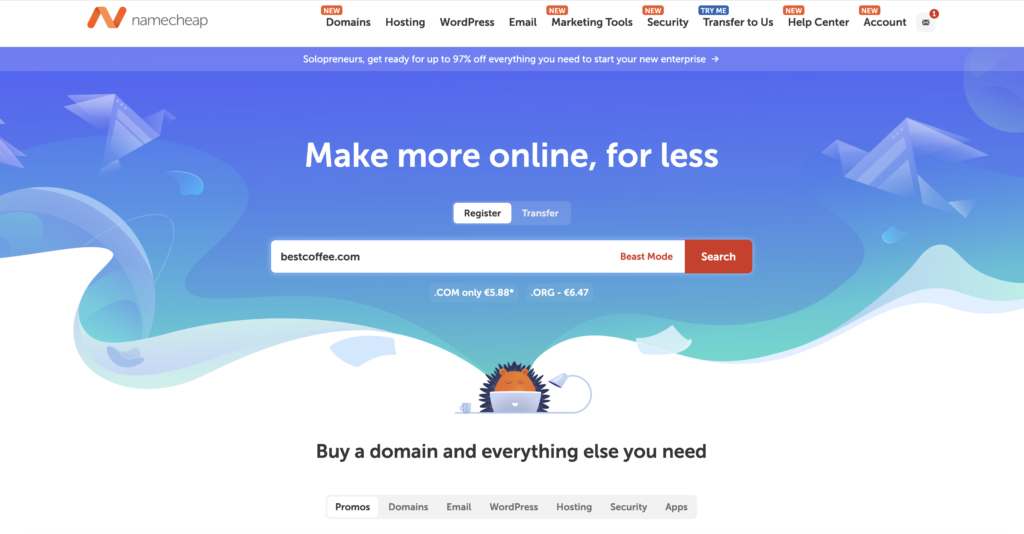 You can register a domain name through domain registrars such as Namecheap, GoDaddy, or through your hosting provider.